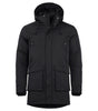 An unisex heavy padded expedition style parka. Removable and adjustable hood. Pre-curved sleeves for ease of movement. Four outer pockets with waterproof zippers and two external pockets with magnets. One hidden safety pocket with a smart earphone solution on the inside of the placket. Two inner zipped pockets and two inner mesh pockets. Drawstring in waist and hem. Velcro adjustable cuffs with inner 2x2 rib cuff in sleeve. Includes an embroidery zip.