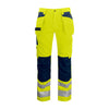 Waistpants with two holster pockets, one with an extra pocket and one with tool loops. Back pockets with flap and Velcro closure. Folding rule pocket with knife button. Reinforcements on the holster pockets, folding rule pocket and on knees. Pre-bent knees. Internal pockets for knee protectors, adjustable in two height levels. Size C42-C64 can be extended by 5 cm.