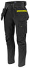 Waistpant in full stretch that provides maximum freedom of movement and comfort. Modern fit. The sides at the top are not in stretch to give stability to the pant. Holster pockets with extra compartments and internal Cordura® reinforcement, by unpicking the contrast seam on the backside holster pockets can be removed. Ventilation at the back of the waist. Spacious leg pockets on both sides. Left leg pocket for tools and pens, also one phone pocket with magnetic lock and one bracket for fastening ID-card. On the right side pocket for folding rule and pocket for tools with knife button. Wider belt loop at the back to prevent pressure from belt. Back pockets in Cordura®, one with flap and magnetic closure. Pre-bent knees. Internal pockets for knee protectors, adjustable in two height levels. Holster pockets, leg hems and knees are reinforced with Cordura® for increased durability. Possibility to attach MOLLE-system on both sides.